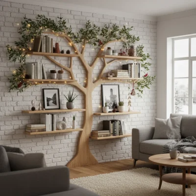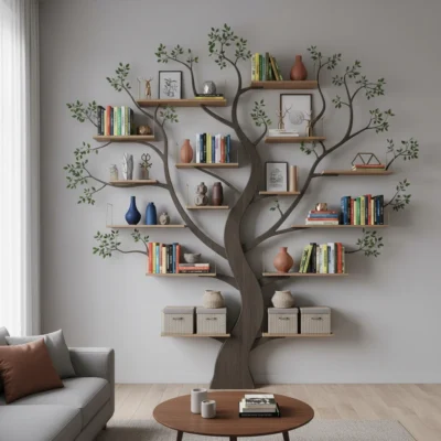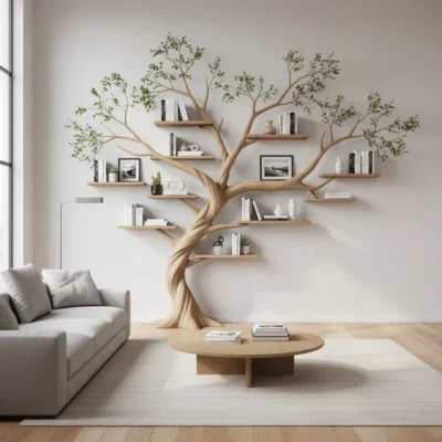 The living room is often the heart of the home — a space where design truly comes to life. A tree bookcase fits beautifully here as a main decorative shelf, offering both charm and function. It can hold books, plants, or keepsakes while acting as an artistic focal point.